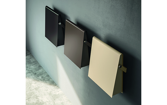 La pendenza del fronte e del retro assicurano quindi un’estrema ergonomia: le salviette possono infatti essere disposte totalmente in aderenza alla superficie e ottenere così una veloce asciugatura. Un maniglione in alluminio, anch’esso completamente riciclabile, ancora il radiatore al muro: la sua finitura è la medesima del corpo scaldante e può essere realizzata nelle oltre 200 varianti colore disponibili a catalogo.