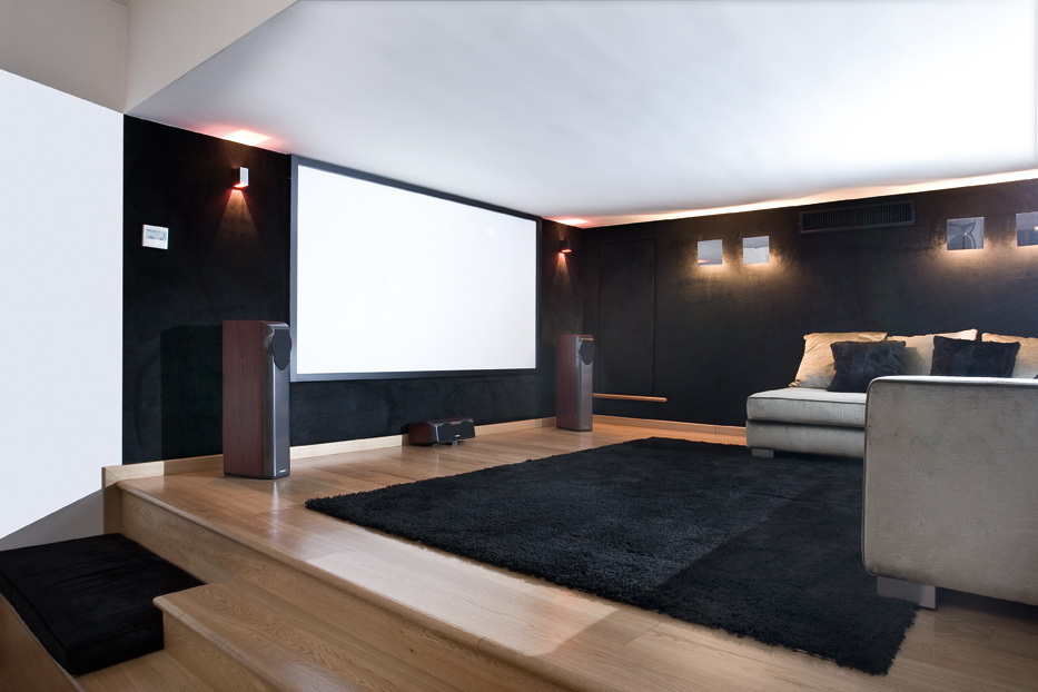 Non meno cospicua la parte intrattenimento: poiché i proprietari amano accompagnare la loro giornata con la musica, il multiroom è stato posto come elemento imprescindibile, fermo restando la massima invisibilità. Lo staff di Domus Postera ha così ideato un impianto audio e video gestito da due matrici Russound in master/slave (in modo da servire 11 zone: camera e bagno ospiti, camera e bagno padronali, cucina, sala pranzo, salone, giardino, studio, taverna, sala cinema) più una video 6×6 per servire anche i cinque televisori e il videoproiettore della sala home theater. Quest’ultima si trova al piano di sotto e rappresenta la dimostrazione di come si possa ricreare un coinvolgente cinema pure in una casa a dimensione d’uomo e senza la necessità di troppo spazio. Naturalmente, anche la saletta home theater è gestita tramite Vantage e improntata alla massima qualità video e audio.