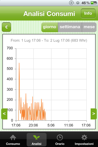 L’App MyPresa, infatti, è divisa in quattro principali funzioni: consumo, analisi, orario e impostazioni. Nella schermata “Consumo” è presente un pulsante on-off che consente di accendere e spegnere da remoto gli elettrodomestici collegati a MyPresa e di visualizzare la potenza istantanea utilizzata. La sezione “Analisi” mostra graficamente i consumi su base giornaliera, settimanale e mensile, con lo storico dei dati. Il pulsante con il simbolo “?” permette di accedere alla visualizzazione dei costi relativi, mentre la programmazione oraria degli elettrodomestici collegati alla presa, invece, è gestita nell’area “Orario”. Infine nelle “Impostazioni” è possibile personalizzare i parametri relativi al prezzo dell’energia elettrica nelle diverse fasce orarie.
