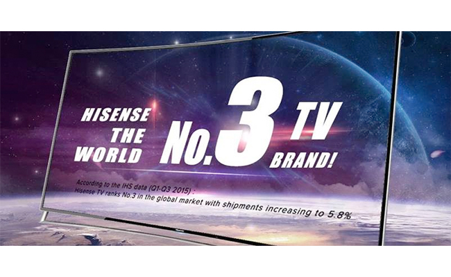 Secondo i dati IHS relativi ai primi tre trimestri 2015, il mercato globale dei TV si attesta intorno alle 155 milioni di unità. Tra le aziende produttrici, Hisense mantiene il trend di forte crescita con un incremento delle vendite pari al 5,8%, raggiungendo per la prima volta il 3° posto al mondo.