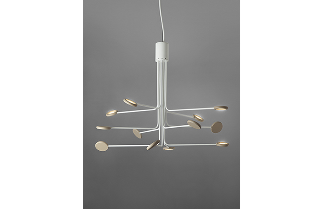 Un omaggio alla natura ma senza concedere spazio a leziosità o elementi superflui. Questo è Arbor (foto sotto), che secondo il progetto di Pagnoncelli nasce da un fascio di elementi lineari raccolti a formare idealmente un mazzo di steli per fiori di luce. Anche in questo caso, semplicissime linee e cerchi da cui irradia la luce danno vita ad un concetto estetico e luminoso fortemente caratterizzante e in grado di proporsi al meglio sia come elemento estetico che come corpo luminoso.
