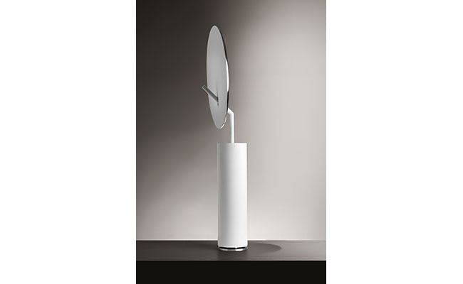 A completare la collezione c’è Luà (sotto, il modello da tavolo), un disco piatto in alluminio con spessore di 6 mm, caratterizzato da un profilo smussato lungo tutto il perimetro e la cui produzione necessita di un’elevata tecnologia unita a eccellenti capacità artigianali. La finitura del profilo è disponibile in varianti di colore e di texture: rame, argento e oro che possono essere lucidi o satinati, a ricreare un contrasto particolare, che conferisce unicità e raffinatezza, anche nel dettaglio di colore. Le feritoie che hanno luogo nel corpo luce servono per la dissipazione del calore, che avviene per conduzione e non deve essere superiore a 60° per le lampade in movimento.