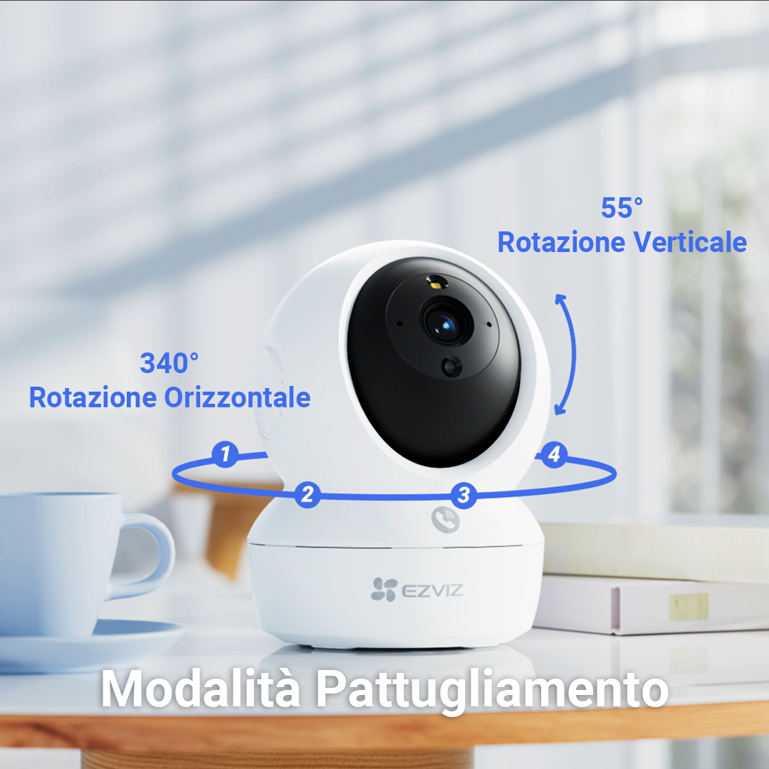 Quando vuoi sentirti a casa, anche da lontano, la telecamera H6c 2K è la scelta perfetta per avere sempre tutto sotto controllo senza complicazioni. Con risoluzione 2K e rotazione automatica, H6c elimina i punti ciechi monitorando ogni angolo. Grazie all’intelligenza artificiale, riconosce i movimenti umani e filtra i falsi allarmi, come tende mosse dal vento. Inoltre, il pulsante integrato consente di avviare videochiamate immediate con la famiglia, per restare sempre connessi.