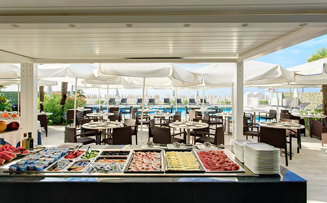 Le soluzioni KE sono state individuate come le più adatte per l’intervento presso gli spazi esterni dell’Hotel Byron Bellavista di Jesolo Lido (VE), che prevedeva la riorganizzazione degli stessi, per poter adibire l’area come zona per la colazione e per l’aperitivo serale.