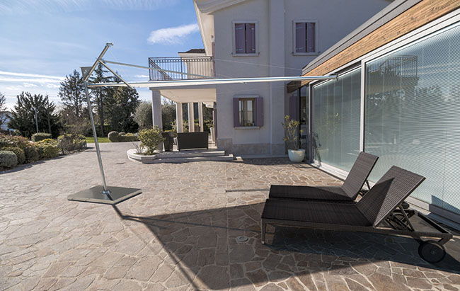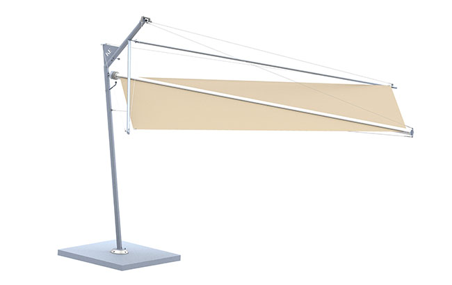 Pensato con un unico palo di sostegno realizzato in acciaio inox, Kolibrie di KE Italy è orientabile a 360° grazie al piedistallo a cuscinetti. La sua movimentazione può essere manuale oppure motorizzata – con la dotazione di motorizzazione con anemometro – che in caso di forte vento fa si che la vela si chiuda automaticamente.