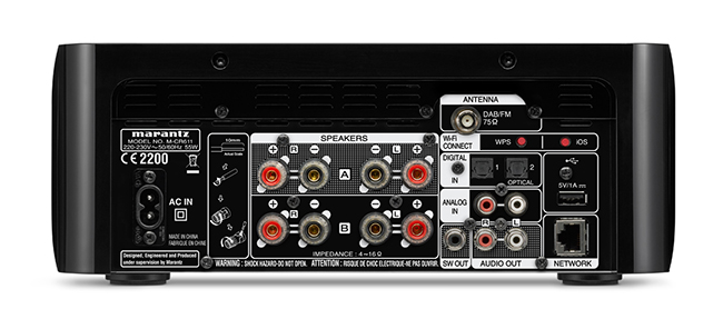 The moment you see the M-CR611 you’ll know that this latest incarnation is pure refinement. With a high-gloss jet-black finish and organically curved side panels, the immediate impression is style and elegance. The centre comes in either black or apple white and the front colour illumination can be changed to white, blue, green or orange for a customisable flourish. The M-CR611 not only looks superb, it’s also a superb performer, reproducing excellent CD-audio, FM, DAB/DAB+ and Network files. Designed with ease of use in mind, the Melody Media features a simple “one-push” Wi-Fi connect. New Bluetooth with NFC boasts connectivity options further and iDevices can be hooked up via a front facing USB port, with an extra rear port for convenience. And there are two digital inputs for connection to a TV. The Melody Media now supports Spotify Connect, as well as a host of other digital media and streaming features. Alongside listening to millions of songs on the world’s most popular online music service, it allows playback of music libraries stored on a NAS (Network Attached Storage) or a computer, provides access to thousands of free internet radio stations, and even supports Apple AirPlay. Listeners can also take control via an Android and iOS compatible Marantz Hi-Fi Remote app. An additional new feature is the speaker A / B configuration, allowing individual volume control for A and B, or master volume control for A and B. Use the Melody Media not just to flood one room with music, but two. This is real versatility in elegant housing. The M-CR611 also supports ALAC, as well as 192kHz / 24bit high-resolution WAV, FLAC, AIFF files, 2.8MHz DSD file and Gapless playback.