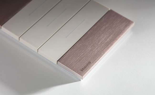 Le numerose proposte di colore chiaro corrispondono alla predominanza di ambienti luminosi con le sfumature del bianco e i colori tenui e pastello. I dispositivi neri rispondono alla diffusione degli ambienti scuri, offrono soluzioni in contrasto e ribadiscono la tradizione del punto luce scuro inaugurata da BTicino proprio con Living sul finire degli anni Settanta. Vari i materiali e le lavorazioni delle placche: tecnopolimeri traslucidi, interessanti e leggeri, grazie all’alternanza di lucido e opaco, grafiche con effetto tridimensionale con riflessi di colore metallizzati e perlacei, metalli spazzolati o naturali, legni grezzi e caldi.