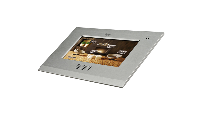Assodato che il tocuh-panel da incasso a parete è l’elemento principale e prefenziale per la supervisione e il controllo dell’impianto integrato, ovvero dell’intera abitazione, ecco che i vari sistemi domotici si arricchiscono via via di pannelli sempre più funzionali. Così, per il sistema Home Sapiens di BPT arriva il Mitho XL E, nuovo modello di punta della linea di touch-panel omonimi. Si tratta di un pannello con display da 7″ impreziosito da un’ampia cornice in alluminio spazzolato oppure anodizzato bianco o nero nella quale sono inseriti l’altoparlante e il microfono. Mitho XL E, infatti, supporta le varie funzioni vivavoce (videocitofono, comunicazione intercom, ecc), ma soprattutto vanta un’interfaccia grafica completamente personalizzabile, oltre quella classica, e molto intuitiva, di BTP. Infatti, sul display del Mitho XL E possono essere visualizzate la planimetria della propria abitazione e/o le fotografie dei differenti ambienti della casa all’interno delle quali possono essere posizionate apposite icone in corrispondenza delle diverse funzioni da gestire: navigando all’interno dell’abitazione è possibile attivare, per esempio, le luci semplicemente sfiorando con un dito l’icona posizionata sul lampadario che, una volta attivata, permette di avere sempre sott’occhio i sistemi in funzione in ogni stanza. Infine, oltre le tipiche funzioni domotiche, il Mitho XL E integra direttamente la diffusione sonora grazie alla compatibilità con le centrali multiroom Mondo T di Tutondo e i sintoampli Yamaha serie RX-Vxx67, mentre attraverso l’applicativo Home Sapiens Web Interface è possibile controllare la propria casa in qualsiasi momento direttamente sul proprio smartphone, iPad o PC, così da comandare facilmente tutte le funzioni da remoto.