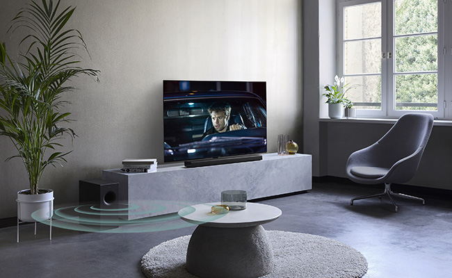 Infine, i nuovi altoparlanti delle soundbar HTB hanno un’angolazione verso l’alto di 7°, in modo che il suono venga proiettato verso lo spettatore. Poiché anche il retro presenta la stessa angolazione, in caso di montaggio a parete si avrà un perfetto bilanciamento e il suono si diffonderà nella stanza a 180°.