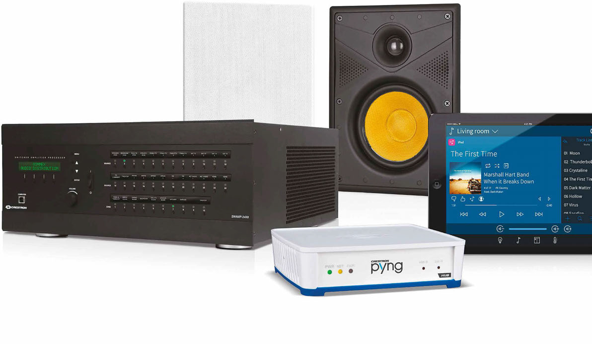 Quanto alla programmazione, tallone d’Achille di installatori e system integrator, causa di un gran numero di ore/lavoro e di difficili problemi tecnici da risolvere, è presto detto: Crestron Pyng non richiede alcuna programmazione, sono sufficienti una semplice configurazione guidata e l’autoriconoscimento dei componenti perché il sistema sia pronto all’uso. Tale semplicità operativa si pagava, nella versione precedente, con una certa ristrettezza del campo d’azione, limitato al controllo dell’illuminazione, delle motorizzazioni (tende, tapparelle, ecc.), degli impianti di climatizzazione e a poco altro. Ma già nell’articolo pubblicato su “HC” 60 parlavamo dell’annuncio fatto da Crestron di un ampliamento di tali possibilità, per esempio della capacità di gestire il multiroom audio. Ora questo ampliamento è realtà.