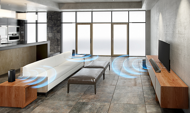 • Sistema composto da soundbar, diffusori posteriori wireless e subwoofer