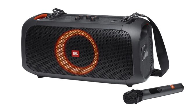 Vivere, ascoltare e cantare a ritmo, questa estate si farа con JBL Partybox On-The-Go. Il potente JBL Pro Sound dà inizio alla festa sincronizzandosi con luci pulsanti a LED e 100 watt di potenza JBL Pro Sound, per uno spettacolo garantito. Per chi vuole essere l’anima della festa, il PartyBox On-The-Go include il microfono wireless JBL per mettere in mostra le proprie doti canore e l’ingresso dedicato per suonare insieme agli amici.
