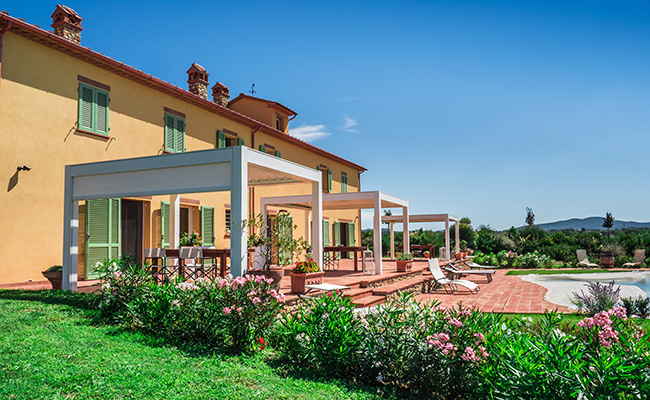 La pergola bioclimatica Kedry Prime di KE trasforma gli esterni di un casolare di campagna situato nell’alta Maremma in confortevoli…
