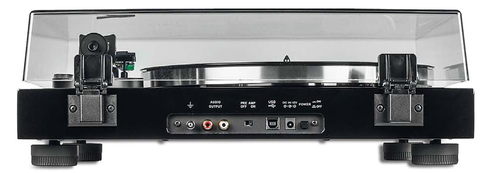 Oltre alle uscite L&R è presente un interruttore per escludere lo stadio Phono e l’interruttore di alimentazione.